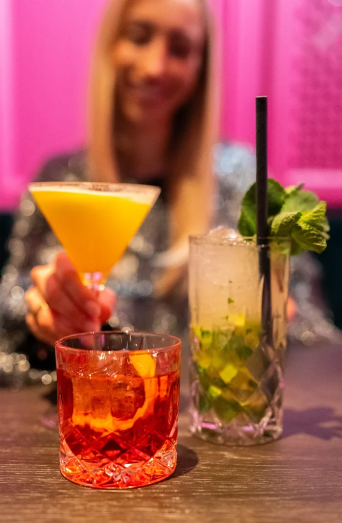 In unserer Bar schlägt das Herz vom MyGoodLife. Sie ist der Treffpunkt für alle, die das Leben feiern. Hier treffen sich Abenteurer nach einem Tag in den Bergen, Freundesgruppen, die einen unvergesslichen Abend suchen und Einheimische, die wissen, wo man die besten Drinks bekommt. Genieße coole Musik, unvergessliche Gespräche und unsere Signature-Drinks. Ob du entspannt abhängen oder die Nacht zum Tag machen willst, hier bist du genau richtig. Die Bar ist der Ort, an dem Geschichten beginnen, Lachen ansteckend ist und die Zeit verfliegt.