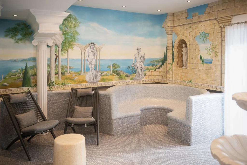 After an action-packed day in the mountains, it’s time to recharge. Hit our Roman-Greek-inspired sauna area to loosen up those muscles and relax. You’ll find it up on the 3rd floor – front-row seats included! While you loosen your muscles in the Finnish sauna, steam bath, or infrared cabin, your gaze can wander over the peaks of the surrounding mountains. Because just as every great adventure needs action, a well-deserved break with a view is simply part of the deal.